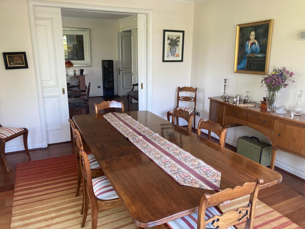 Este excelente y amplio departamento se encuentra en un sector exclusivo, en un edificio de 4 pisos con 2 departamentos por piso. Ofrece 5 dormitorios y 5 baños, donde el dormitorio principal cuenta con un baño en suite y un walk-in closet. También incluye un dormitorio y baño de servicio. Los espacios son amplios y luminosos, el living comedor tiene parquet o piso de ingeniería, con salida a una terraza. Los dormitorios están alfombrados. La cocina está amoblada, incluye un comedor de diario y una loggia. Además, todas las ventanas cuentan con termopanel.